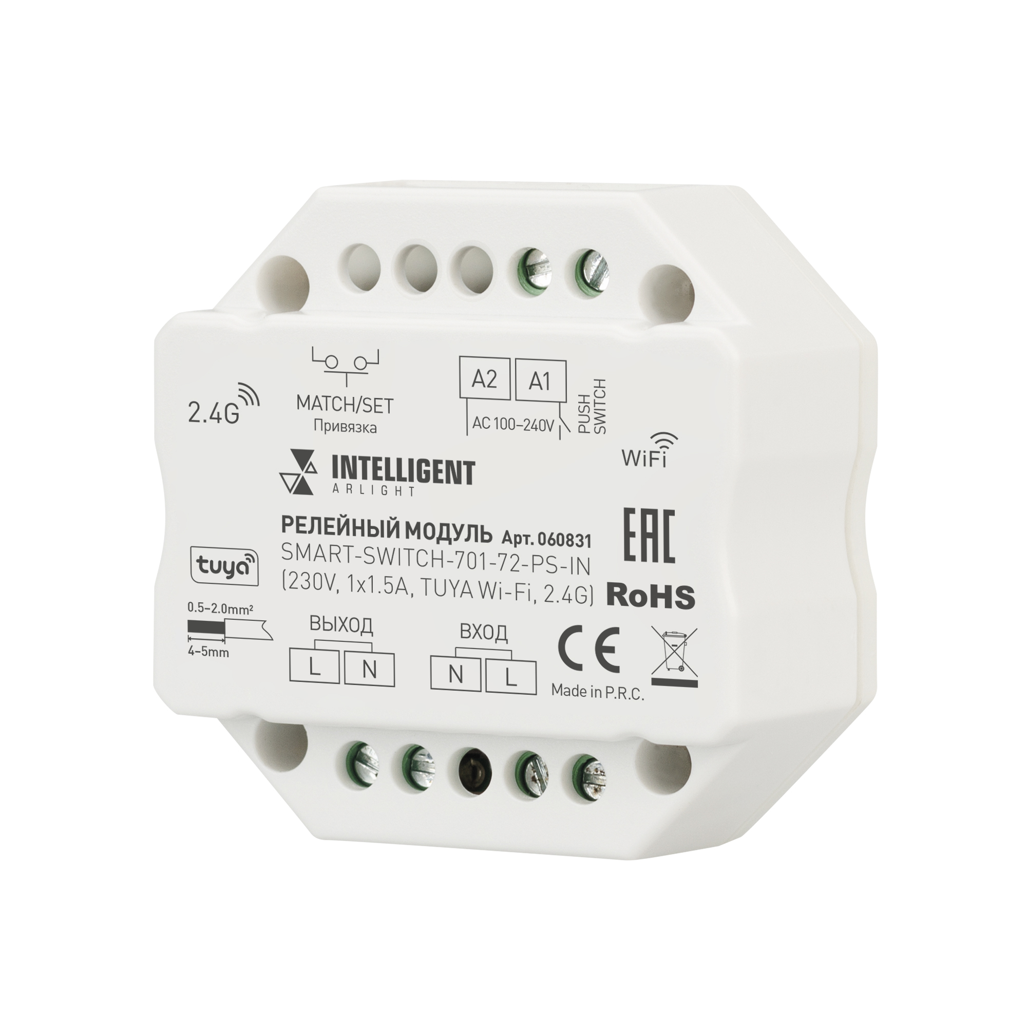 INTELLIGENT ARLIGHT Релейный модуль SMART-SWITCH-701-72-PS-IN (230V, 1x1.5A, TUYA Wi-Fi, 2.4G) (IARL, IP20 Пластик, 5 лет) 060831 в Ярославле