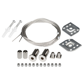 Комплект подвесного крепления для профиля LINE-3535-BENT-SIDE. Регулируемый трос с держателем длиной 2 метр позволяет легко зафиксировать конструкцию на необходимом расстоянии от потолка.