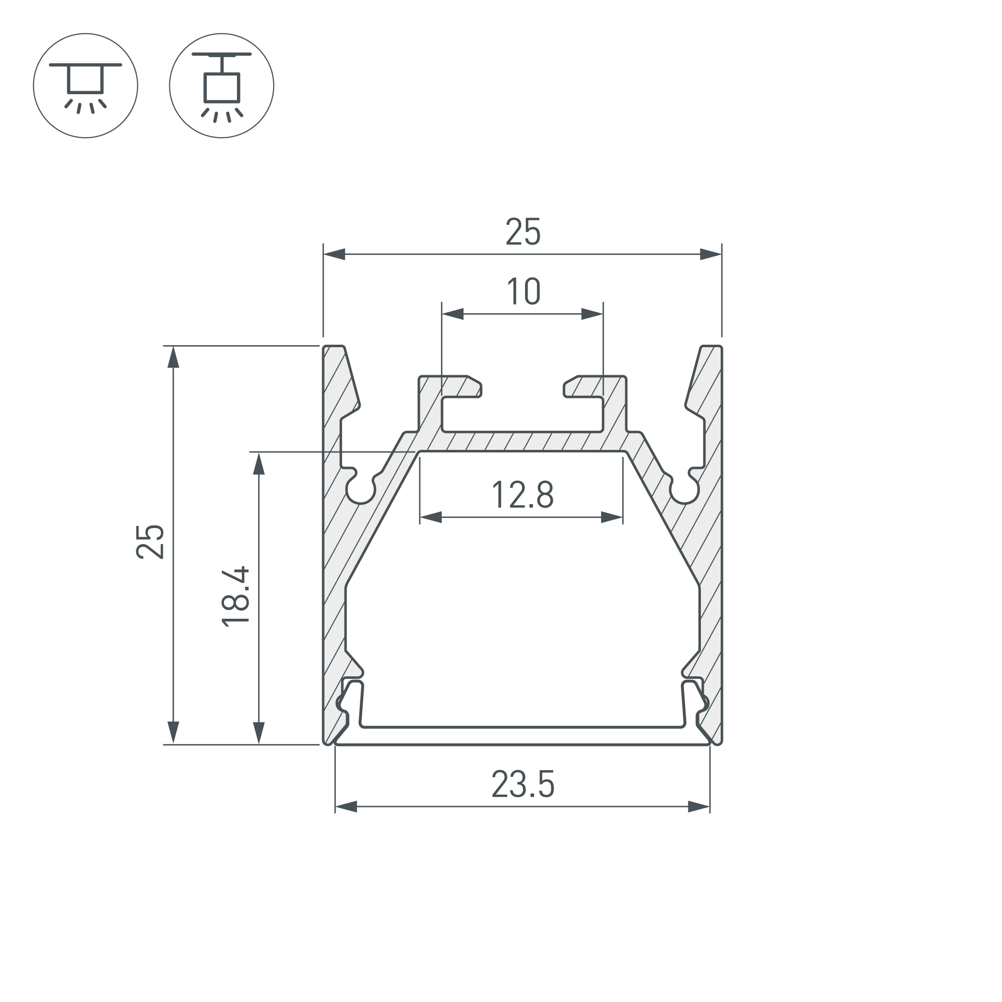 Подвесной/накладной профиль из анодированного алюминия для основного освещения и контурной подсветки. Габаритные размеры профиля составляют 2000 мм в длину, 25 мм в ширину и 25 мм в высоту. Площадка для установки светодиодных лент позволяет использовать ленту шириной до 12,8 мм и мощностью до 26,3 Вт/м. Это обеспечивает гибкость в выборе светодиодных лент и создает потрясающие световые решения. Экраны, заглушки и другие аксессуары не включены в комплект и приобретаются отдельно. Цена указана за 1 метр профиля. Отличное решение для создания современных световых проектов.