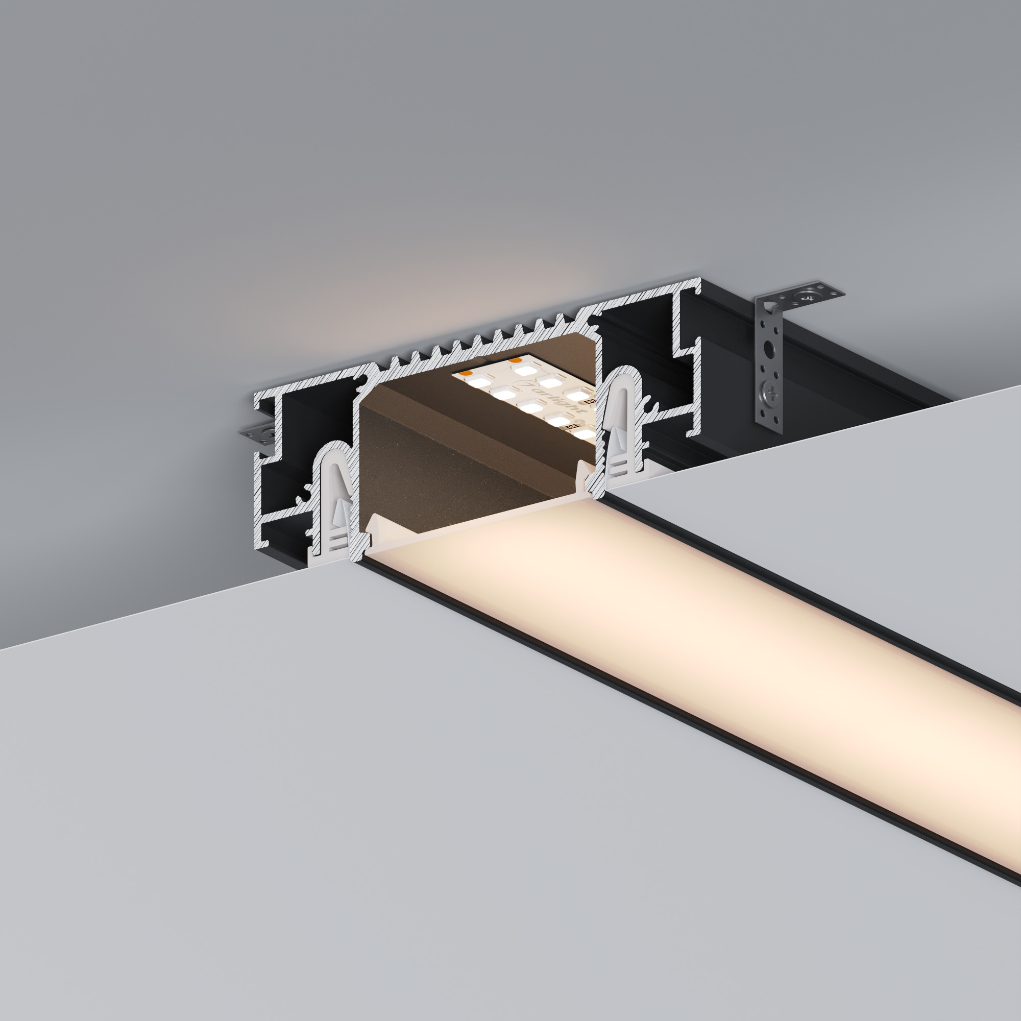 Встраиваемый алюминиевый профиль черного цвета (центральная линия) для дизайнерских решений «линии света» в натяжных потолках. Решение 2-в-1: служит каркасом для крепления натяжного потолка и профилем для установки светодиодной ленты. Подходит для тканевых и ПВХ потолков. Габаритные размеры профиля составляют 2000 мм в длину, 86,8 мм в ширину и 32,7 мм в высоту. Площадка для установки светодиодных лент позволяет использовать ленту шириной до 38 мм и мощностью до 62 Вт/м. Это обеспечивает гибкость в выборе светодиодных лент и создает потрясающие световые решения. Экран, заглушки и другие аксессуары не включены в комплект и приобретаются отдельно. Цена указана за 1 метр профиля. Отличное решение для создания современных световых проектов.